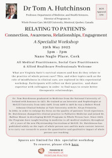‘Relating to Patients: Connection, Awareness, Relationship, Engagement: An Interactive Workshop on Whole Person Care’ on Monday 29th May 2023, 3-7pm, at Nano Nagle Place in Cork.